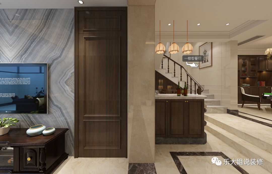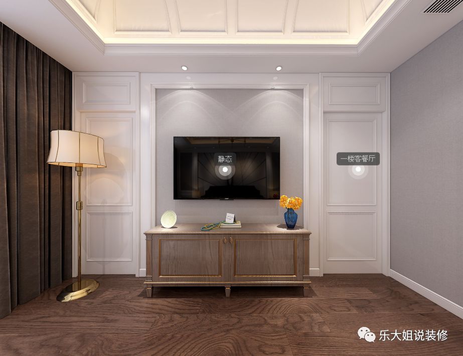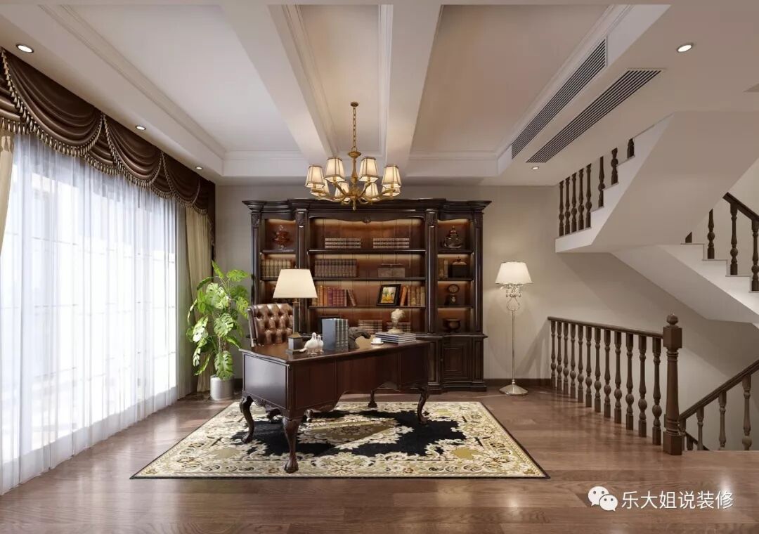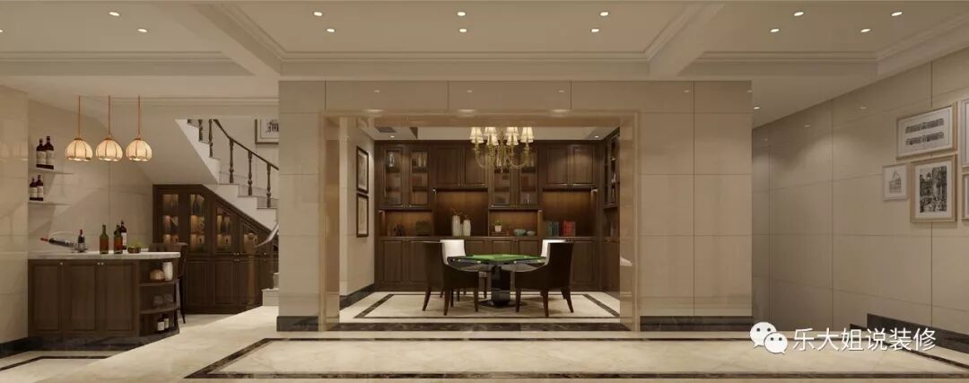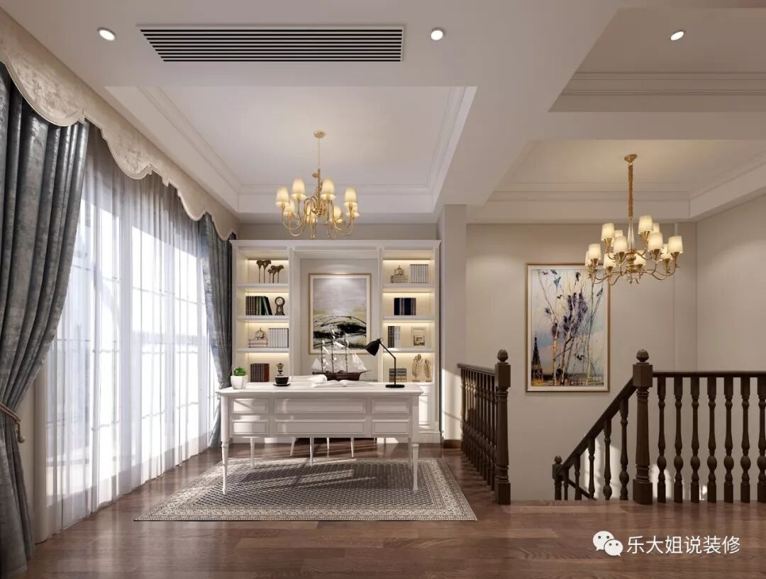 - 乐大姐团队设计师根据业主的需求规划整体空间布局,空间功能齐全,包括会客区、客厅、餐厅、厨房、卧室、书房等,把每一个空间都利用得淋漓尽致;