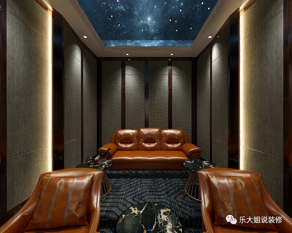 地下室作为功能区,设置了影音室、品酒区、棋牌室、会客区等,提供了一个朋友聚会聊天娱乐的绝佳去处。