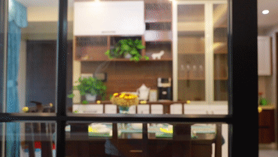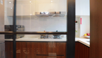 餐厨一体,再用玻璃门进行隔断,既有开放式厨房的颜值,也有封闭式厨房的便利。