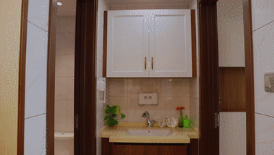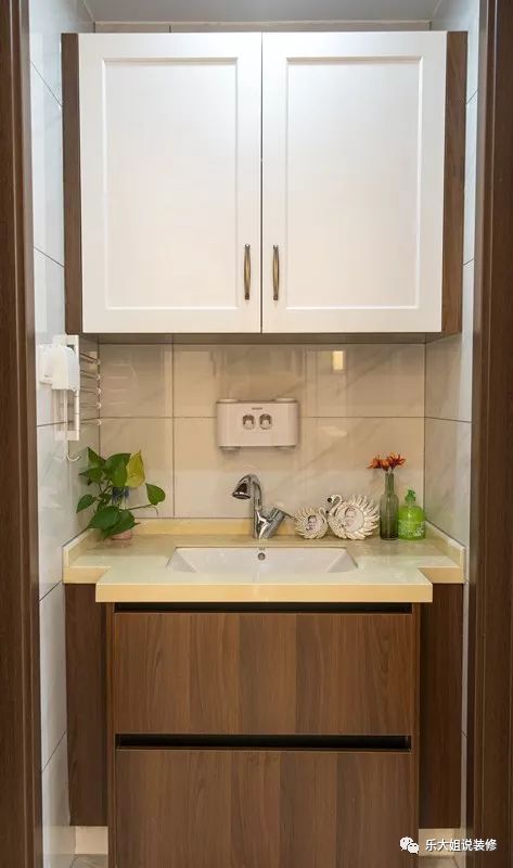 使用干湿分离的设计,干区看着不大但上下柜的收纳空间,却能满足主人家一应日常需求,实用性超强。