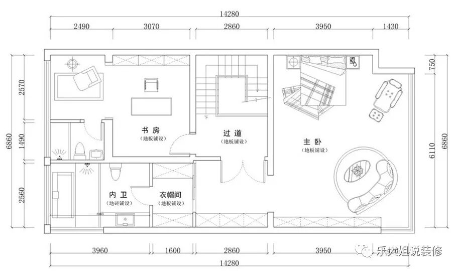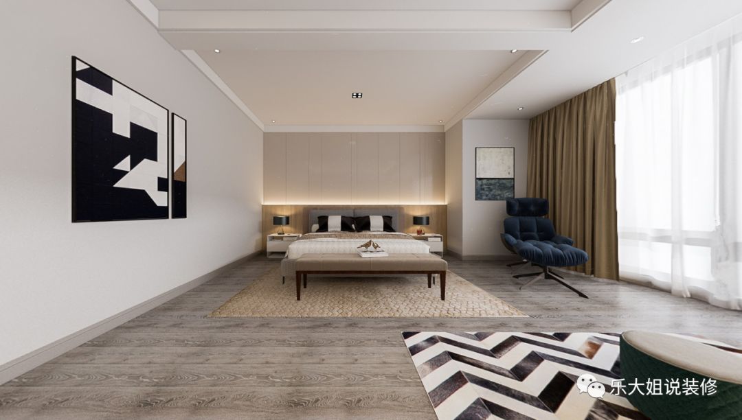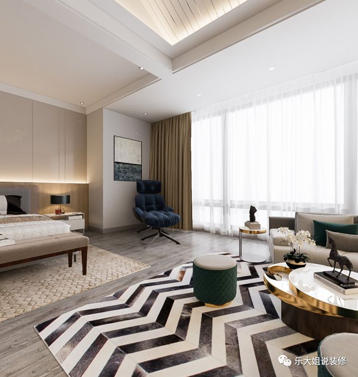 乐大姐团队设计师为主人量身定制酒店式主卧套房,整个三层都是主卧空间,集睡眠空间、主卫、衣帽间、书房、沙发休闲区五大功能于一体,不仅使日常生活更便利,同时也能平衡生活重心,提升生活品质。