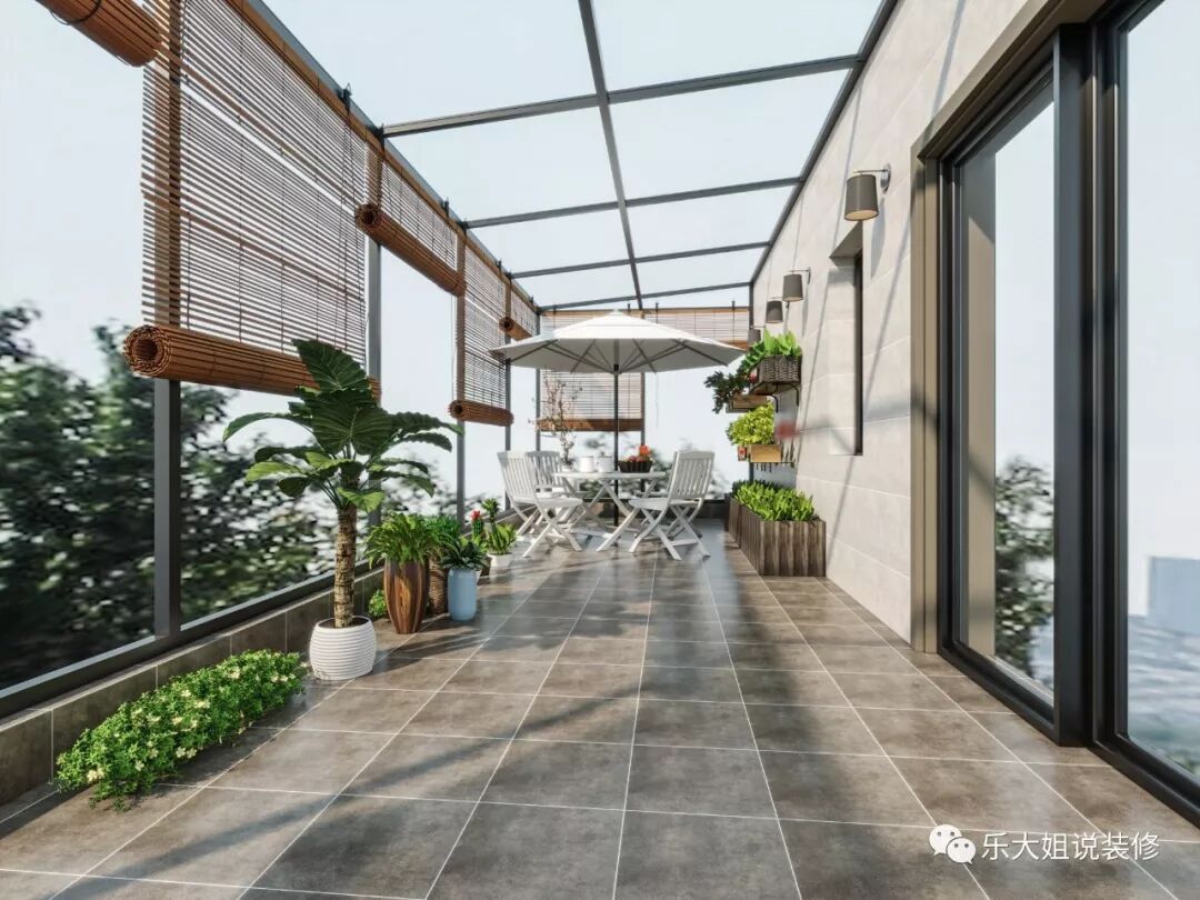二层父母房视野极好,还带一个露天阳台,阳台采用玻璃房设计。天晴的时候,一抹阳光照射进来,洒在阳台的座椅上上,一杯茶,一本书,一次小憩,优哉游哉!
