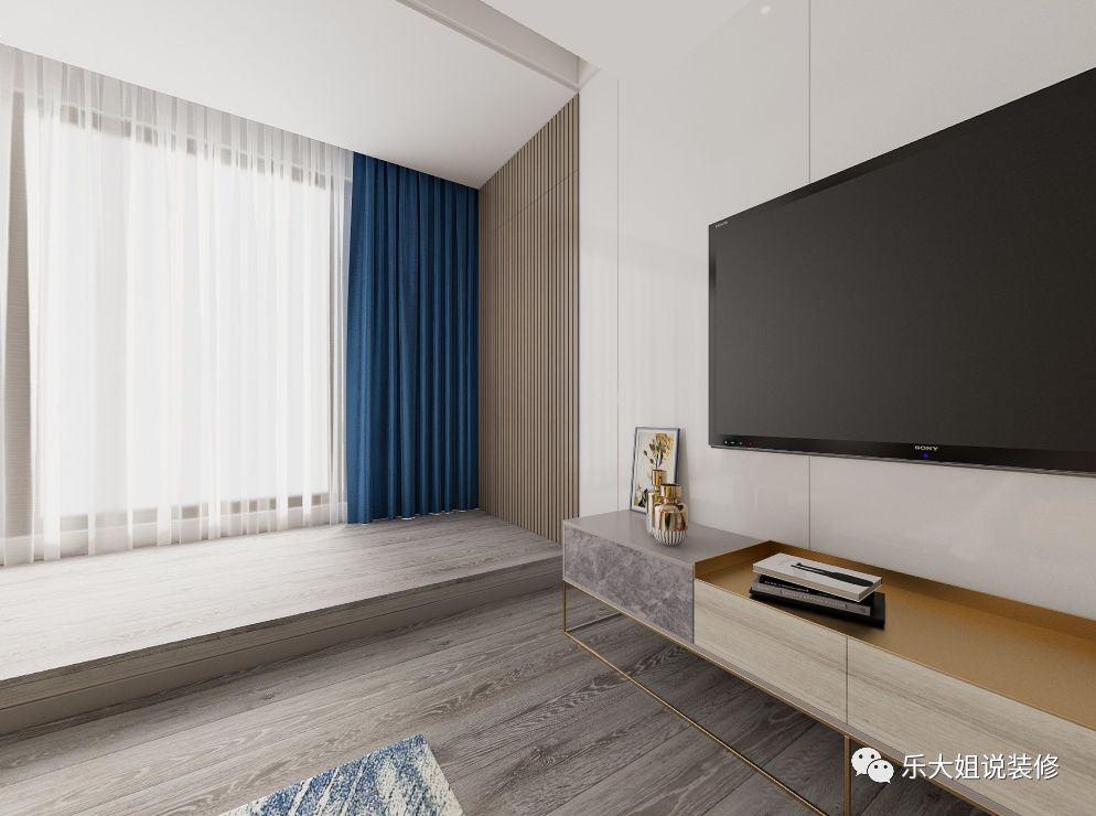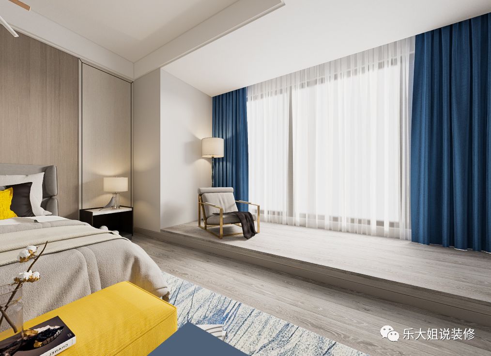 阳台设计在次卧里面,采用地台的形式,与睡眠空间区隔开来。休息之余,也可以在躺椅上晒晒太阳,一种怡然自得的惬意。