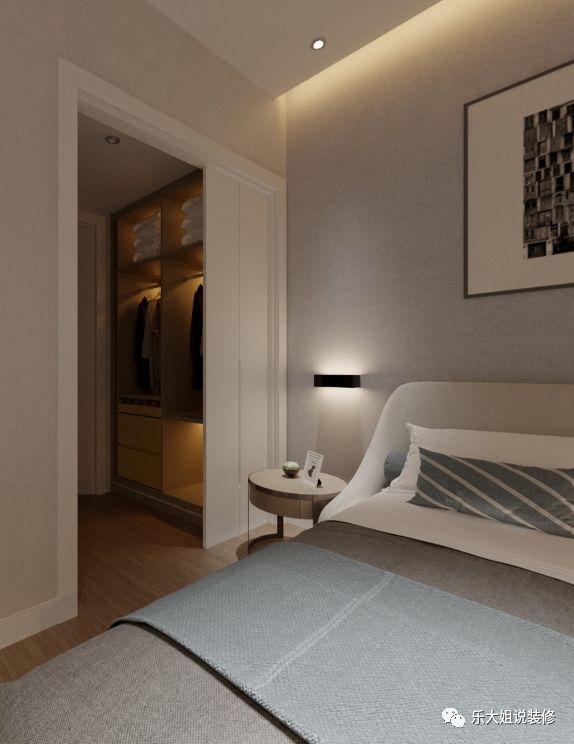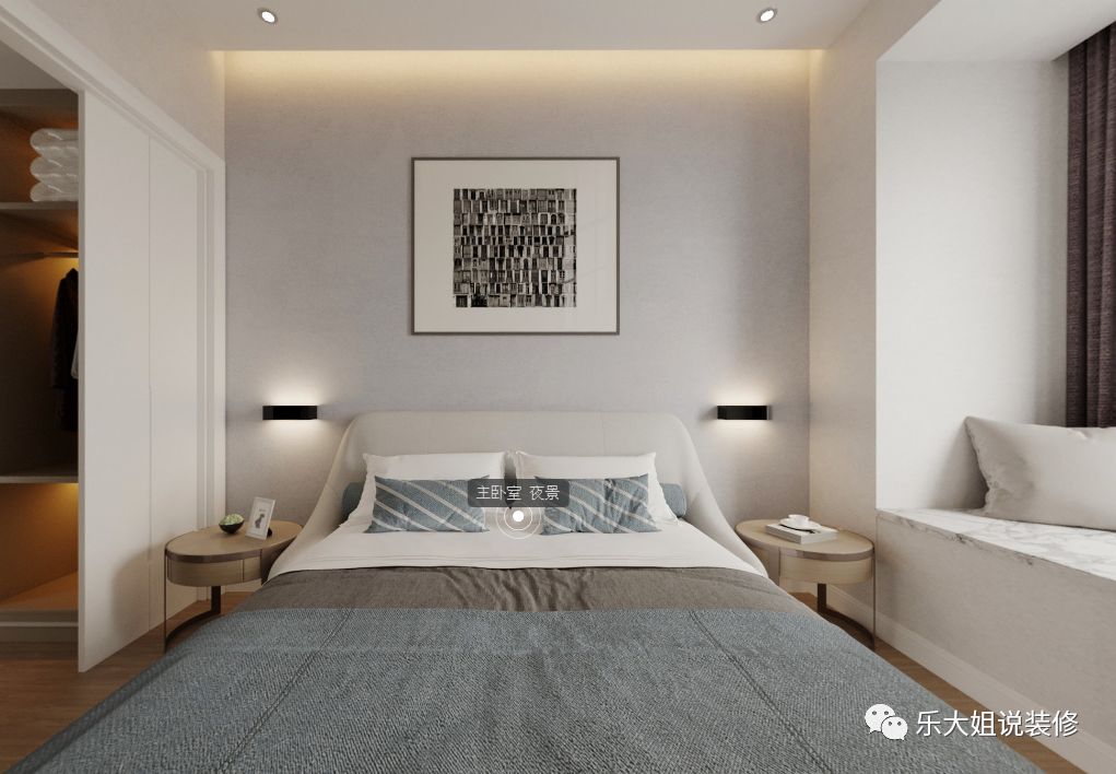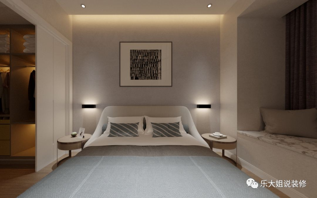 卧室作为休息睡眠的空间,其实灯光本来就不必太强烈,非常适合采用无主灯设计。一盏落地灯,两个壁灯,几条灯带,已经能够给空间带来温馨和煦的微光。