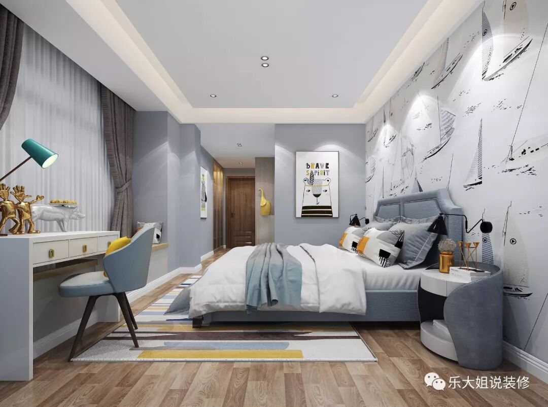 对真理的探索,对未知的好奇,是整个男孩房想表达的思想。男孩房背景墙选自于充满探险精神的航海图,让空间顿显求知和探索的乐趣,有利于帮助孩子建立快乐、自信和成功的人生观念。