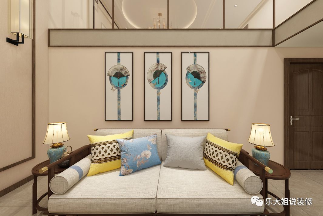 乐大姐团队设计师在楼梯的位置做了一道格栅隔断阻隔视线,极具禅意。实体的墙面与镂空木质格栅,虚实相生,实要空灵,虚可凝想,实而不塞,虚而不空。