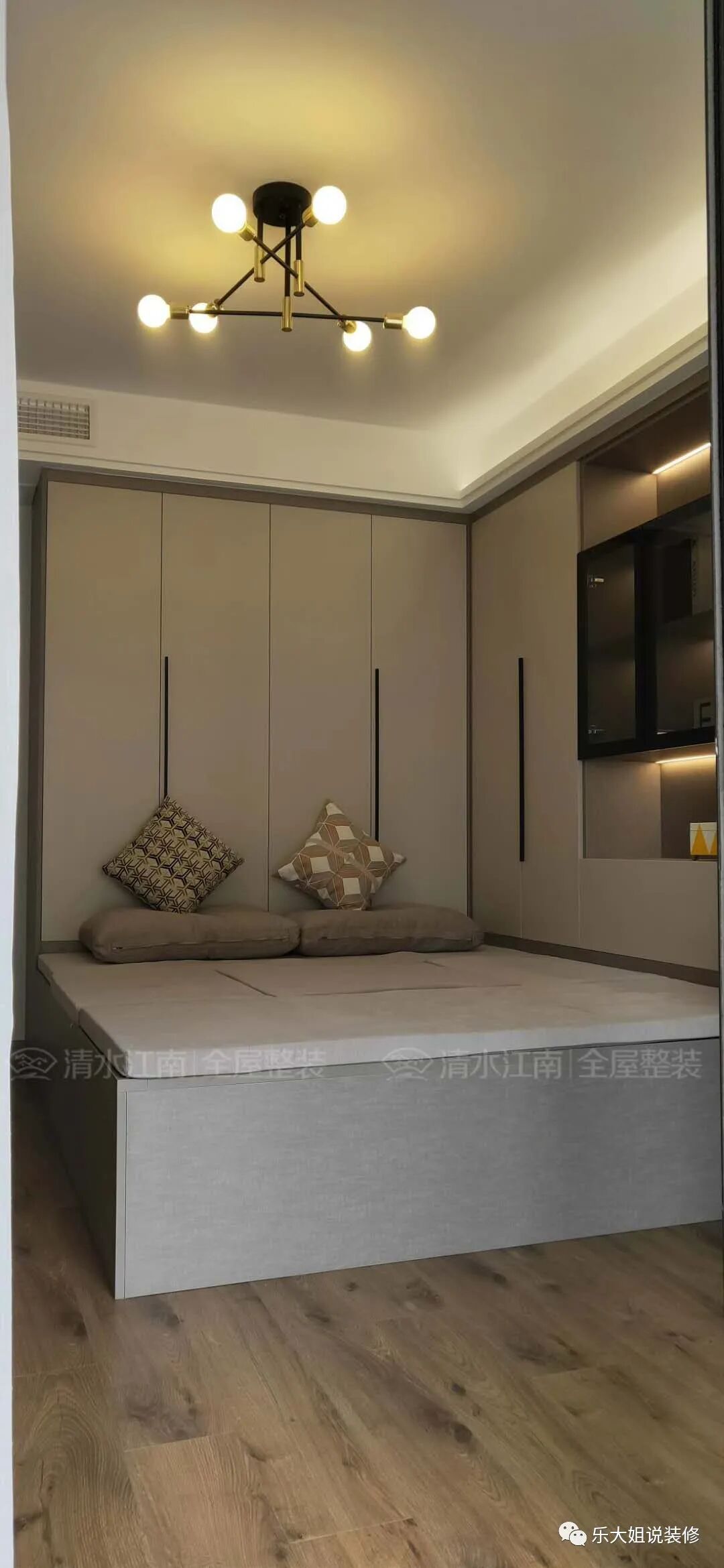 吴越祥院这套案例的竣工现场乐大姐有分享到自己的微信朋友圈里,获得了一致好评,高还原度的设计赢得了很多人的青睐,项目交付后业主彭先生非常满意,尤其是客厅和餐厅这块区域,整个背景墙的色彩搭配,包括灯光、木饰面与硬包结合都处理的很好!还有过道与客餐厅之间的墙面直角处理,让人感觉眼前一亮!实景效果要比效果图还要好!在这边度假,邀请朋友过来玩,很有面子!现在大家和乐助手一起来看一下整个装修过程和装修效果吧(悄悄话:乐助手告诉你哦,这套案例实景效果的视频会在苏州电视台《第一时间》播出),大家可以对比一下设计效果与实景效果之间的还原度哦)