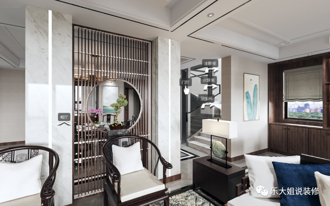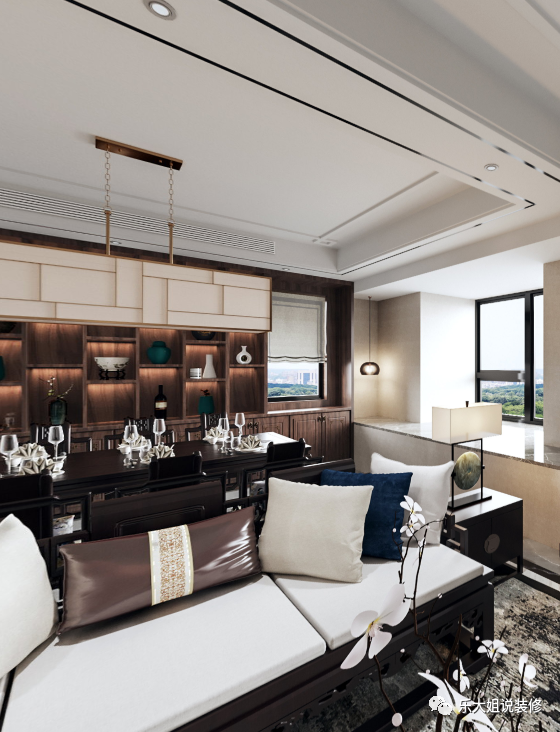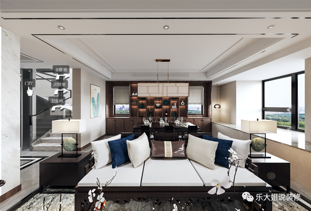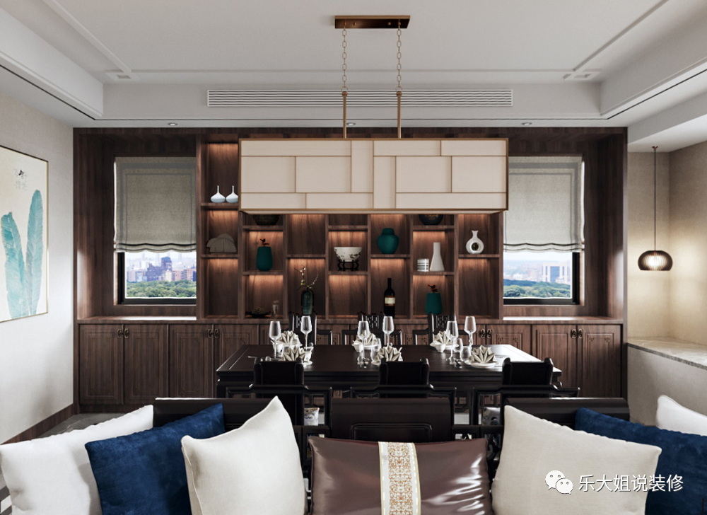 每一次的新中式表达,都是一次独一无二的古今对话,更如同书写了一首意蕴深长的诗歌。根据业主的需求,在历史与当下、未来的时间坐标上,在复古情调与现代审美之间,乐大姐团队设计师找到了一个恰如其分的融合,极致东方情怀与现代山水意境。
