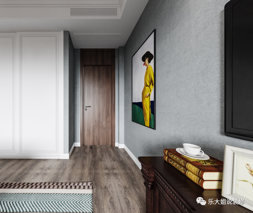 为了照顾到年轻一代的新审美,次卧为现代美式,着重在家具取材方面凸显美式的质感,突出个性化,清新爽朗显得空间更有活力和朝气,在空间的特征中就能传达居者的品味。