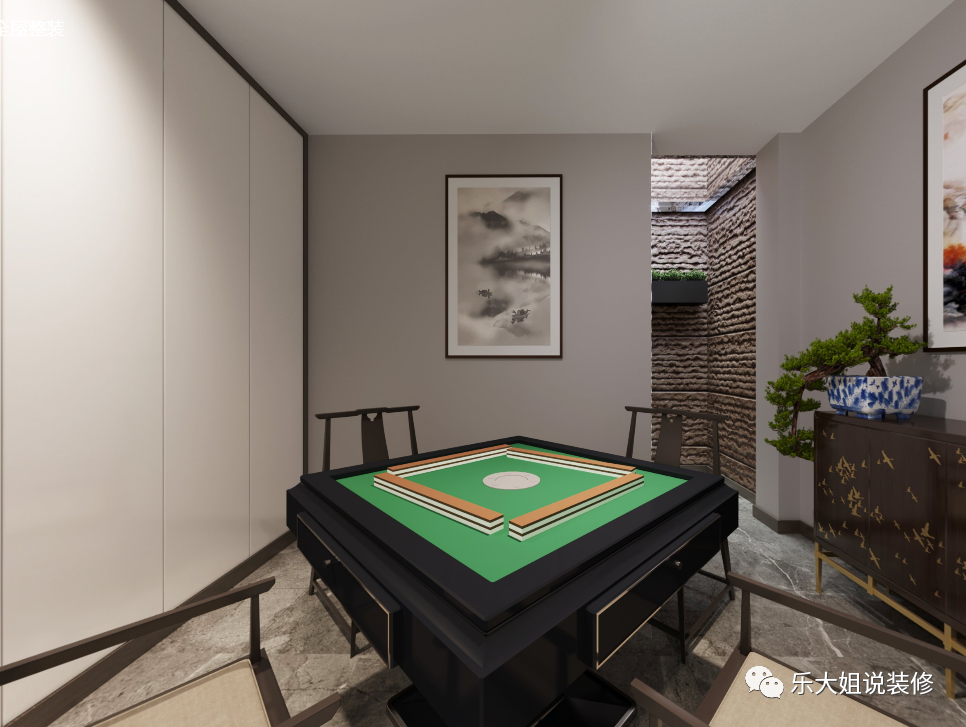 地下层是承载着家庭互动、社交活动等主要功能性的空间,乐大姐团队设计师根据成员的生活形态规划动线,体现多元诉求和轻松自由的生活。以大尺度的茶室为轴心,棋牌社、音乐区等,昭示着主人兴趣爱好及生活品质,自由多元的功能要求得以满足。