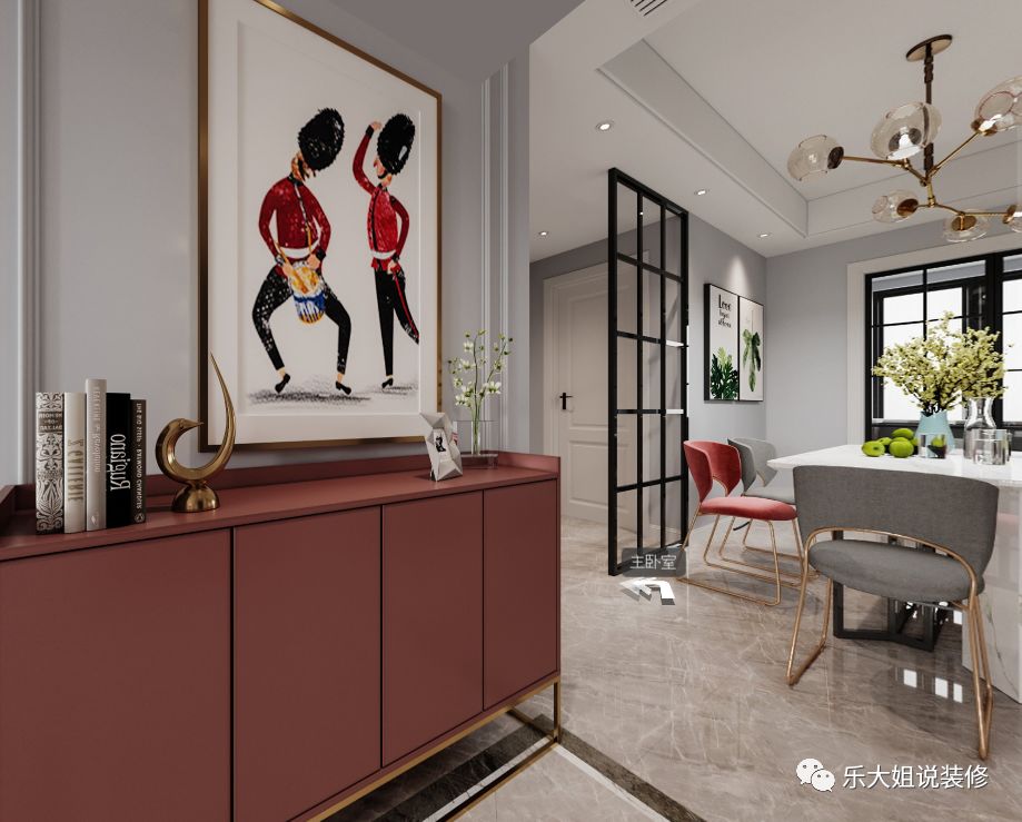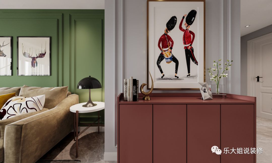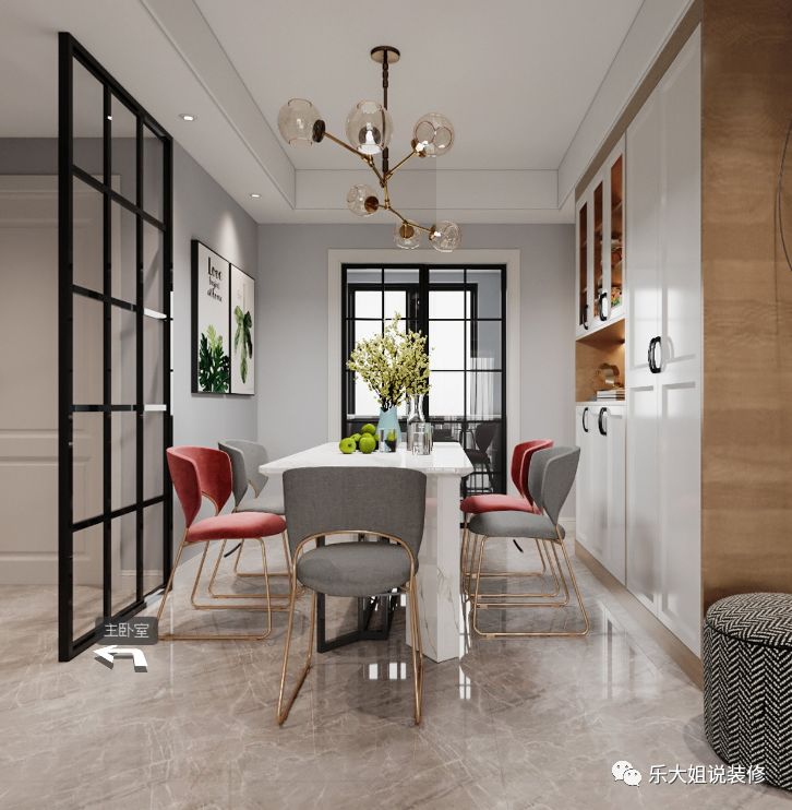 餐厅后面大型的餐边柜,不仅解决了储物问题,并且利用一些小饰物装点空间,小巧的点缀增添空间的精致感。#乐大姐##13382100888#