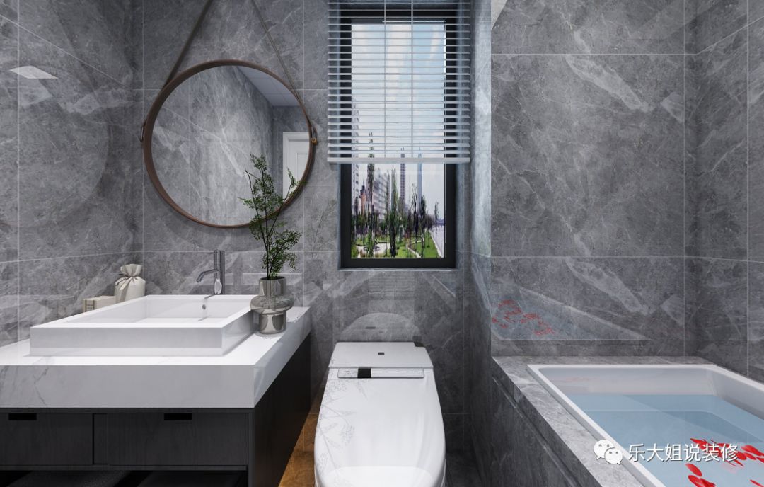 主卧套房的卫生间以白色和灰色为主色调,同样以简单的几何形状组成,除去繁杂的装饰,还以最简单的生活状态,百叶帘的设计满足了透光效果,使整体空间更加宽敞和干净。