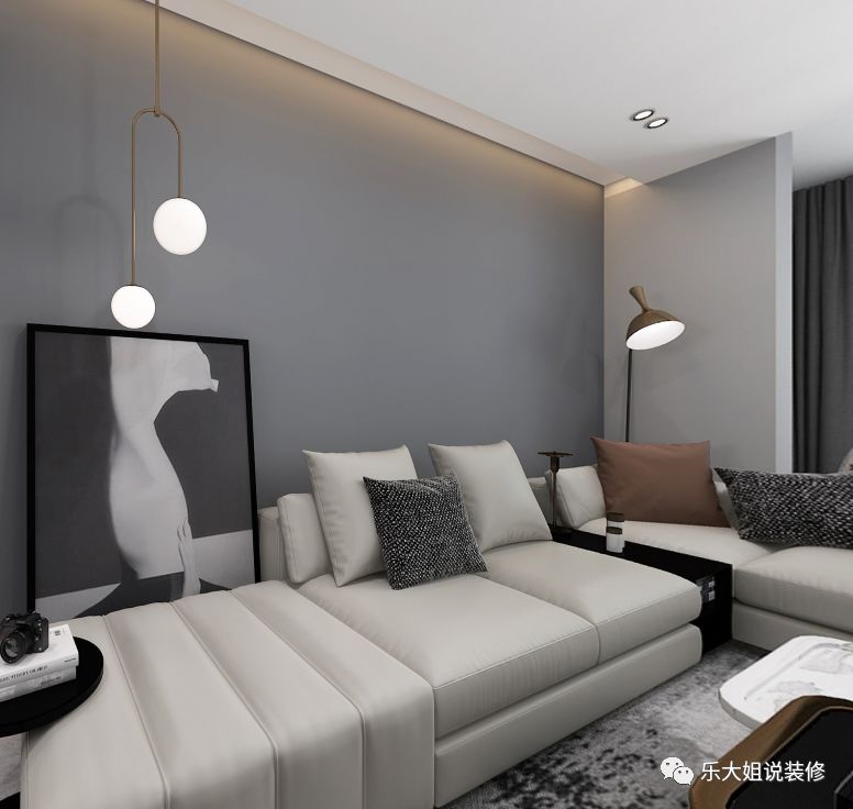 客厅的配色体现了业主所想要的沉稳、冷静、端庄、耐看的气质,乐大姐团队设计师以灰色系为基底,不同深度的灰色贯穿整个生活空间,灰咖色的沙发,甚至是抱枕、小饰品摆件都选用了同色调,营造出柔和唯美的优雅感。